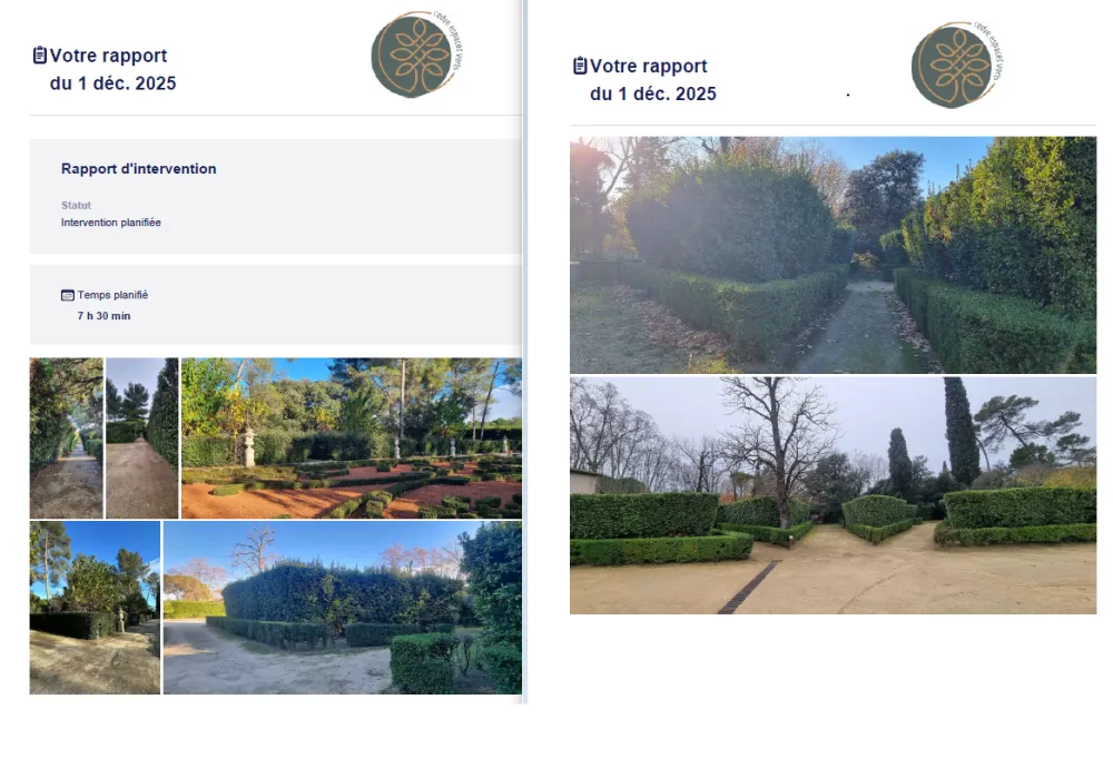 Parce qu’un beau jardin mérite aussi un suivi à la hauteur, Cedre Espaces Verts fait évoluer ses rapports d’intervention. En cette période de fin d’année, c’est notre façon d’offrir un service plus confortable et plus pratique : moins de zones d’ombre, plus de visibilité, et un rendu plus agréable à consulter pour nos clients du bassin Montpellierain et Nîmois.